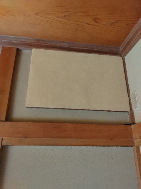 壁掛けエアコンの背板を設置し、穴あけしました。